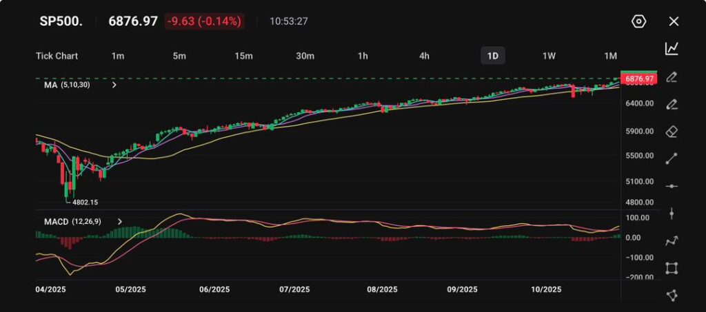 From a technical perspective, the index remains in a clear long-term uptrend. The 5-, 10-, and 30-day moving averages continue to align in a bullish formation, supporting the broader market structure.