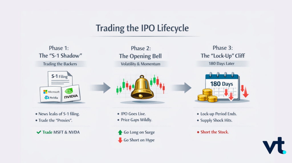 Трейдерам CFD стоит следить за торговлей по импульсу (momentum trading — сделки по сильному движению цены) во время IPO, держать в фокусе риск фрифлоата и отслеживать изменения в индустрии ИИ, которые могут влиять на более широкие сектора, особенно на «старые» техкомпании.