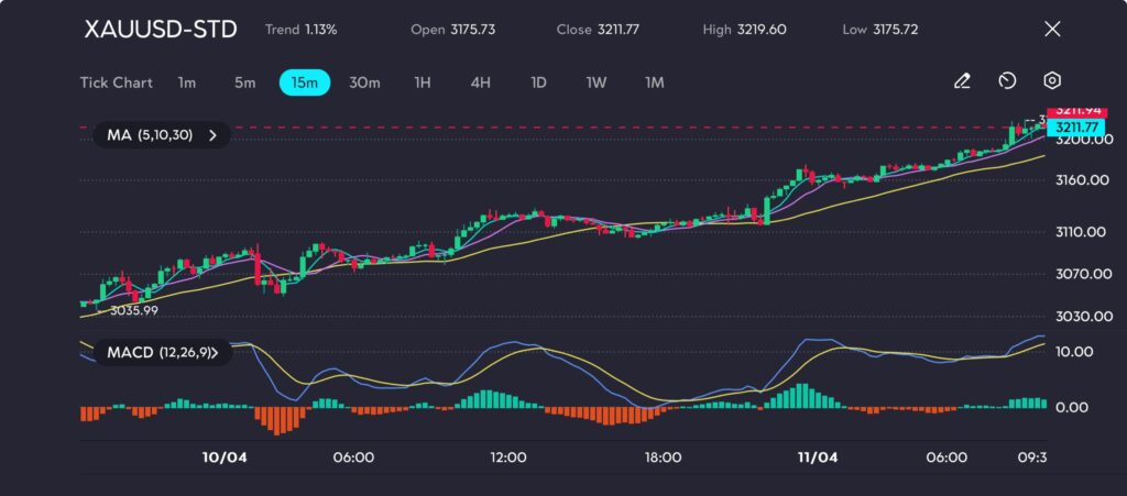 Picture: XAUUSD hits a fresh high of 3219.60, maintaining strong bullish momentum, as seen on the VT Markets app.