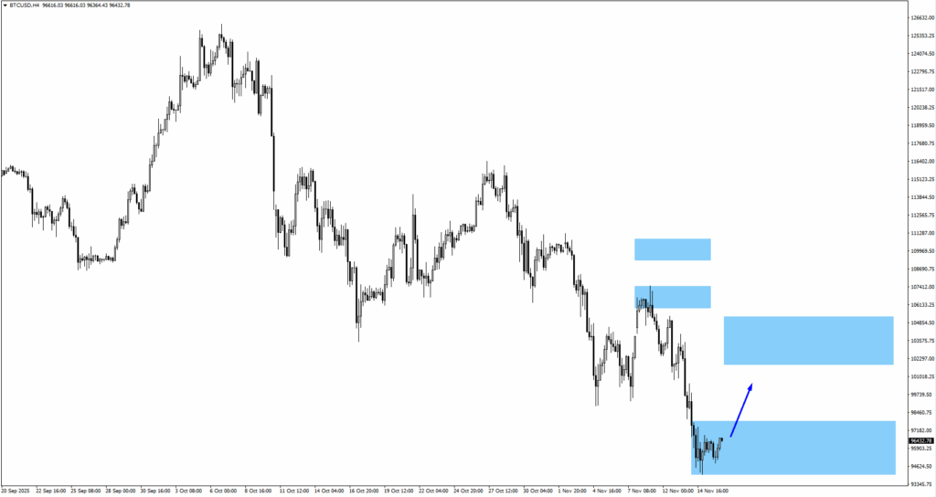 • A move toward $102,000 or $104,500 could follow if rate cut odds rebound.