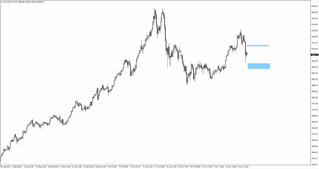 • Price currently consolidates near $4,085 after a steep drop from recent highs around $4,260.