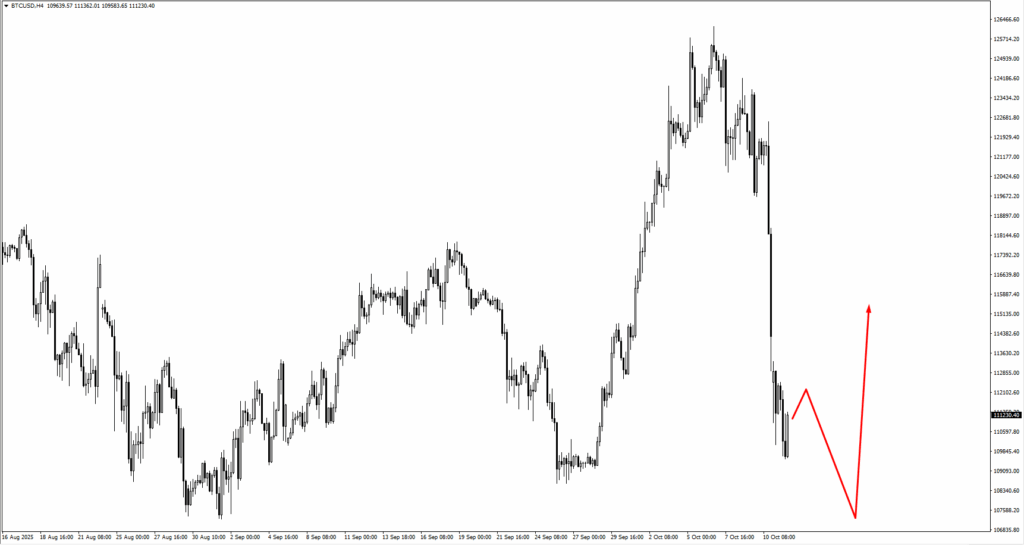 • Bitcoin fell sharply from 122,700, hitting a low near 109,600 before stabilising around 111 200.